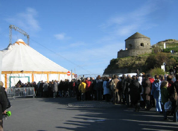 Chapiteau rempli (800 personnes) pour le concert de Babord Amures lors de la traditionnelle Fête de la Coquille de Port en Bessin, qui a toujours lieu en novembre.